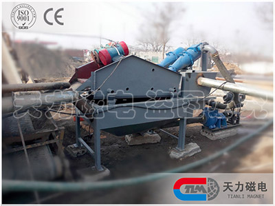 天力磁電獨特設計的脫水篩,篩板主要部分有5°的角度,兩個脫水篩的振動電機水平安裝,結構堅固緊湊,一個在另一個上端,旋轉時不平衡的重力產生的回轉效果讓篩子的工作穩定。脫水篩的篩網使用的是嵌入式的耐磨聚氨酯篩網,解決了普通篩網易損的重大難題,使流水線可以長期穩定的生產。